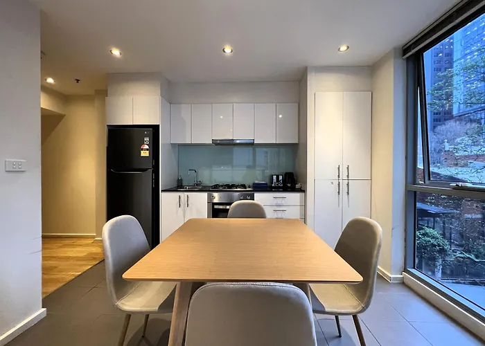 2 Brm 2 Bath, Chinatown, State Library Victoria Apartment is nearly 25 minutes' walk from Eureka Skydeck and boasts spa facilities such as a sauna. Offering access to a private swimming pool, the apartment is within short walking distance of State Library Victoria.